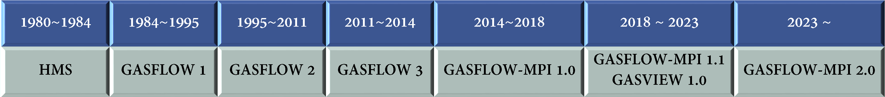 <figure><img src="https://4265438985-files.gitbook.io/~/files/v0/b/gitbook-x-prod.appspot.com/o/spaces%2FdhqtzdFGgZTppLdxTCcJ%2Fuploads%2Fgit-blob-66715b13a868c1112684cab4df6ea9836d2ca539%2Fimage.png?alt=media" alt=""><figcaption><p>GASFLOW Development History</p></figcaption></figure>