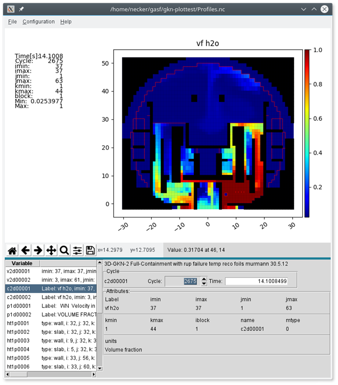 * Reading and displaying the data in the output files, ***plothist.nc*** and ***profiles.nc**,* generated by GASFLOW-MPI.