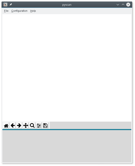 Using ***profiles.nc*** or ***STL*** files cuts through the mesh perpendicular to the X,Y or Z axis can be displayed. This can be used to either check the mesh used for a simulation or the result of the conversion by voxelization process.When **Pyscan** is started without a file name on the command line, a rather blank window is shown: